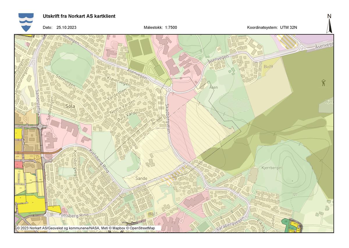 Framtidig bussvei skal gå gjennom området enten gjennom Åsenveien eller langs golfbanen og Skadbergmyra. Her kan du lese mer om status for planlegging av bussveien.