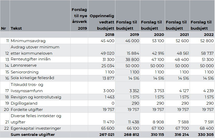 Sola kommune har fra 1.juni 2014 inngått administrativt vertskommunesamarbeid med Stavanger kommune om legevakt og psykososialt kriseteam, jamfør k-sak 56/14. Det er nå varslet en utgiftsøkning for legevakten grunnet økte utgifter til drift av nødnett og ordinær lønnsøkning, noe som vil utgjøre kr 0,27 mill. for Sola kommune i 2019. Videre i planperioden legges det opp til en årlig økning 2,8 prosent.