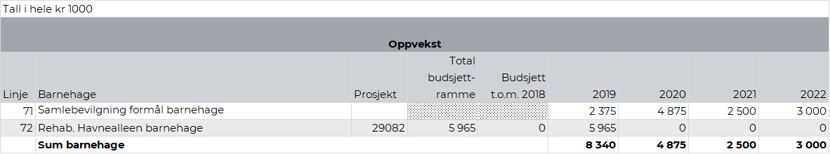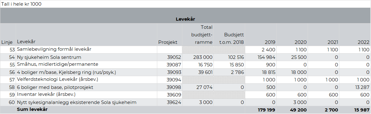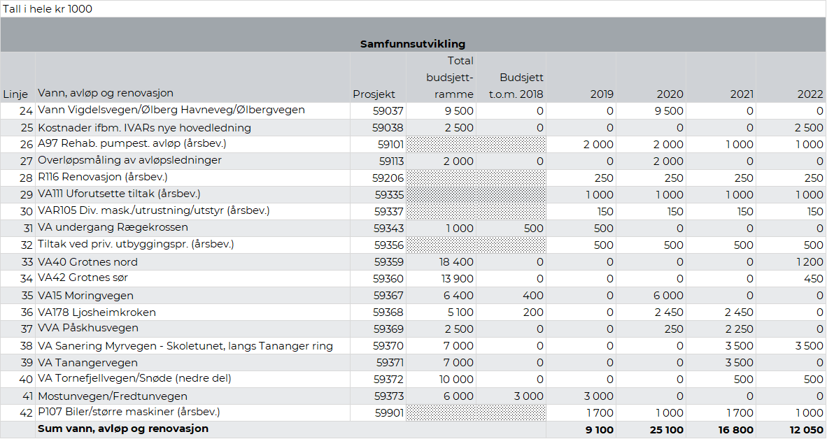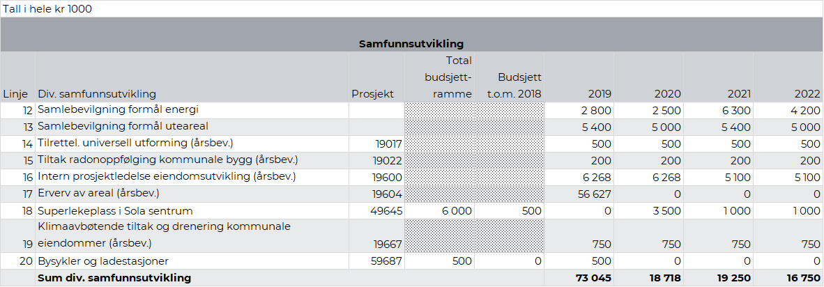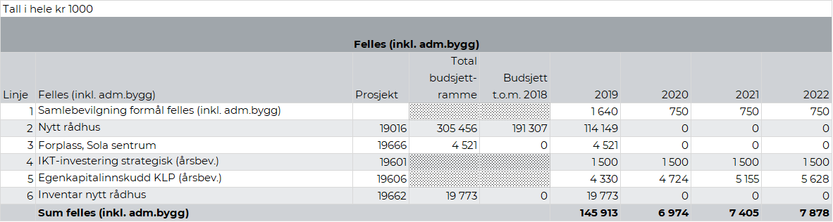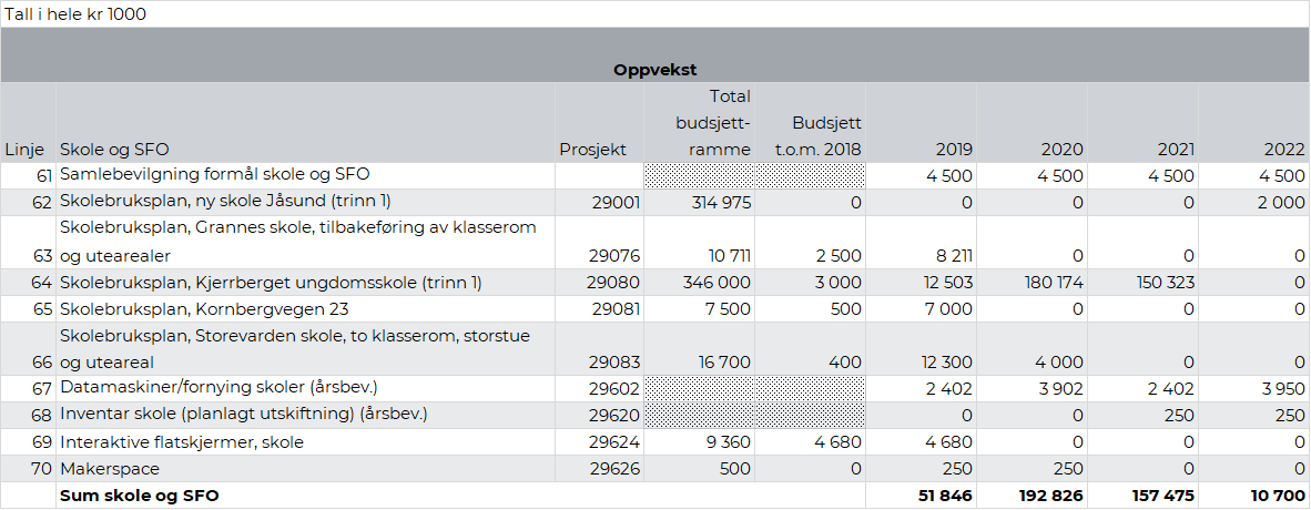 Rådmannens forslag til investeringer 2019-2022