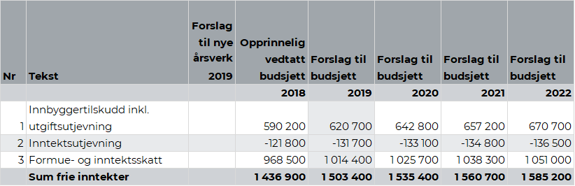 Frie inntekter (skatt og rammetilskudd)
