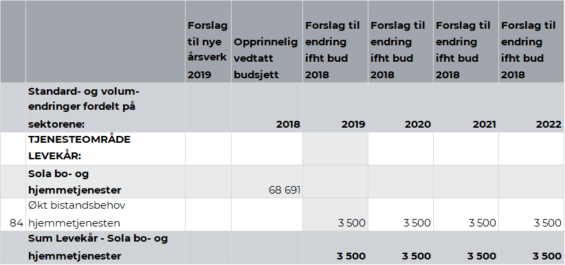 Som følge av endret behov knyttet til et tiltak i hjemmetjenesten har det vært behov for å øke bemanningen samt øke bruk av medisinske forbruksvarer. Rådmannen anbefaler å bevilge kr 3,5 mill. til dekning merutgifter knyttet til dette tiltaket.