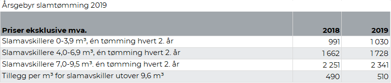 Årsgebyret for slamtømming foreslås økt med fire prosent i 2019 i forhold til pris 2018.