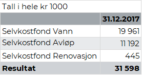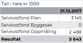 Akkumulert fremførbart underskudd hos seksjon Byggesak utgjorde kr 6,6 mill. per 31. desember 2017.